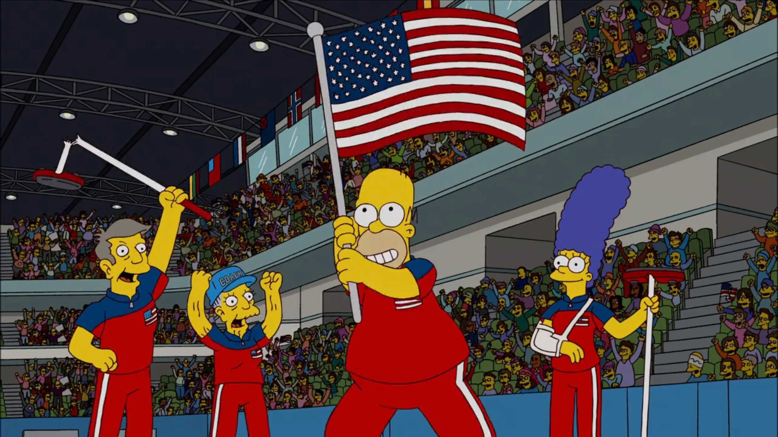 Στο επεισόδιο του 2010, «Boy Meets Curl», ο Homer και η Marge διαγωνίζονται με την ομάδα του curlingτων ΗΠΑ εναντίον της Σουηδίας στους Ολυμπιακούς Αγώνες του Βανκούβερ. Αν και παραλίγο να ηττηθούν, οι Simpsons κερδίζουν τον αγώνα.