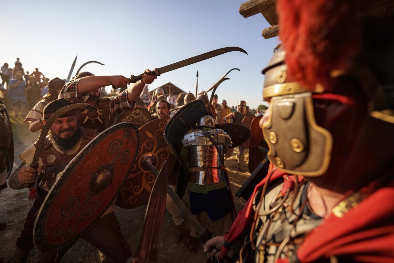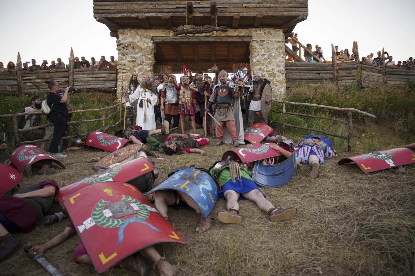Λάτρεις της ιστορίας ντυμένοι ως Ρωμαίοι στρατιώτες και Δάκες πολεμιστές συγκρούστηκαν μπροστά σε πλήθος κόσμου σε μια αναπαράσταση της σύγκρουσης που κορυφώθηκε με την ρωμαϊκή κατάκτηση των εδαφών της σημερινής Ρουμανίας.
