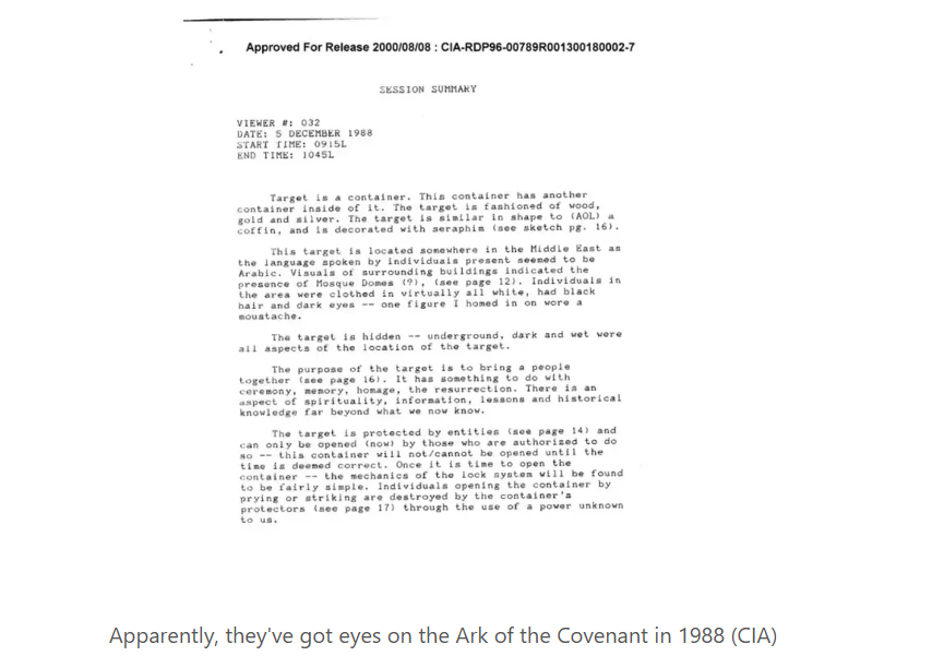 Η συγκεκριμένη ισχυριζόμενη εύρεση της κιβωτού στηρίζεται σε μια ψυχική παρατήρηση που έγινε από έναν από αυτούς τους «τηλεθεατές» λίγα χρόνια πριν η CIA κλείσει το project. Έτσι, είναι πολύ απίθανο να έχει πράγματι βρεθεί η τοποθεσία της κιβωτού.