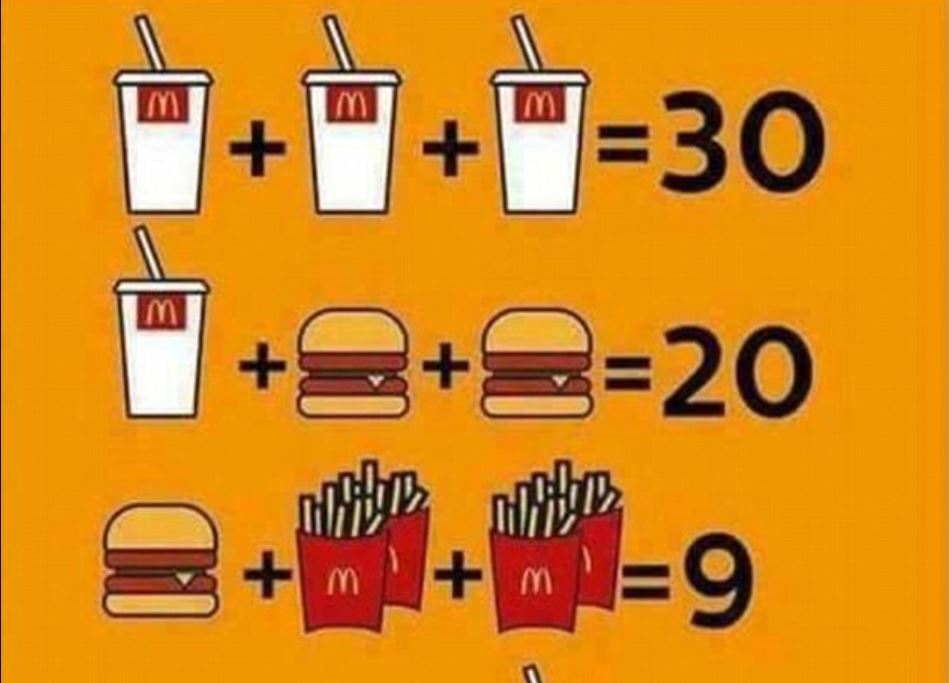 Περιλαμβάνει μόνο τρία αγαπημένα αντικείμενα από το μενού των McDonalds, αλλά αυτό το μαθηματικό παζλ έχει αφήσει τους ανθρώπους στο Facebook να ξύνουν τα κεφάλια τους.