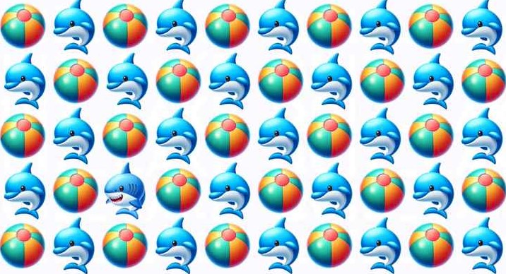 Στην εικόνα, μπορούμε να δούμε μερικά emojies δελφίνια και μπάλες θαλάσσης. Κάπου βρίσκεται ένα λάθος emoji. Μπορείτε να το εντοπίσετε σε μόλις 6 δευτερόλεπτα;