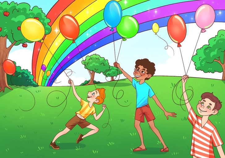 Στην εικόνα, μπορούμε να δούμε τρία παιδιά που παίζουν σε ένα πάρκο με μπαλόνια, ενώ στον ουρανό υπάρχει ένα ουράνιο τόξο. Η πρόκληση για τους αναγνώστες είναι να εντοπίσουν το λάθος μέσα σε 9 δευτερόλεπτα.
