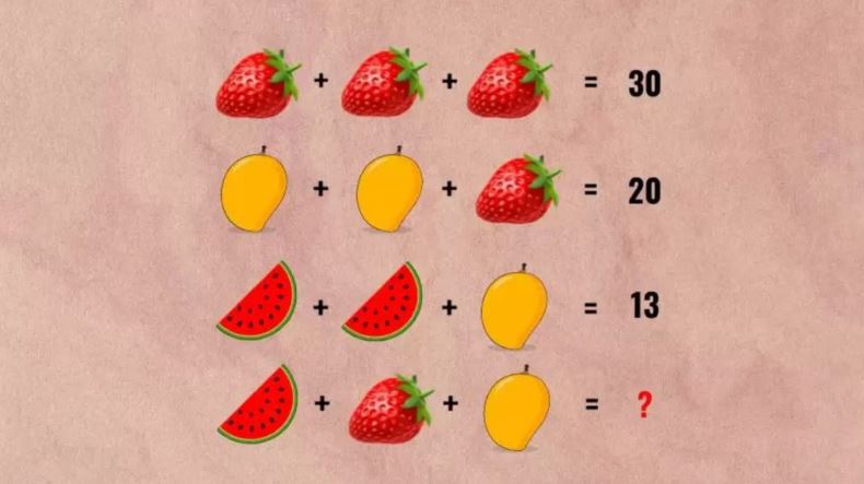 Το τεστ παρουσιάζει μία σειρά πράξεων, κάθε μία από τις οποίες έχει και ένα διαφορετικό αποτέλεσμα. Η μόνη διαφορά είναι πως αντί για αριθμούς οι πράξεις αποτελούνται από τρόφιμα. Σκεφτείτε ποιες μαθηματικές πράξεις πρέπει να κάνετε ώστε να βρείτε πόσο αξίζει το κάθε τρόφιμο και τελικά να προσθέσετε τις τιμές τους για να βρείτε τον αριθμό που λείπει.