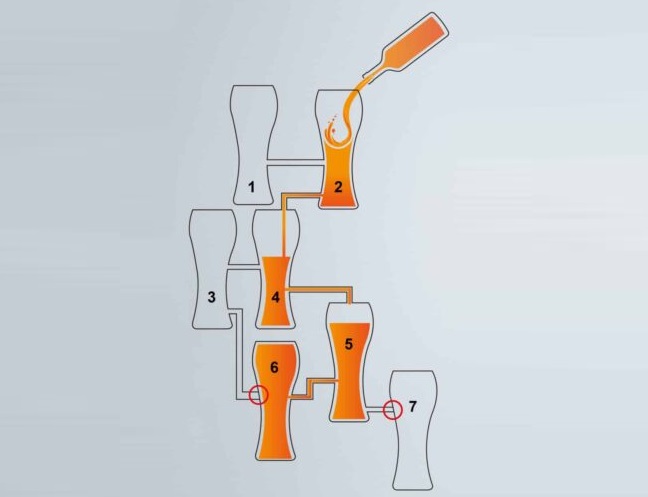 Παρατηρώντας με προσοχή όλες τις δεξαμενές και δημιουργώντας στο μυαλό σας την διαδρομή που θα ακολουθήσει η μπίρα θα καταλήξετε ότι το ποτήρι που θα γεμίσει πρώτο είναι το 6.