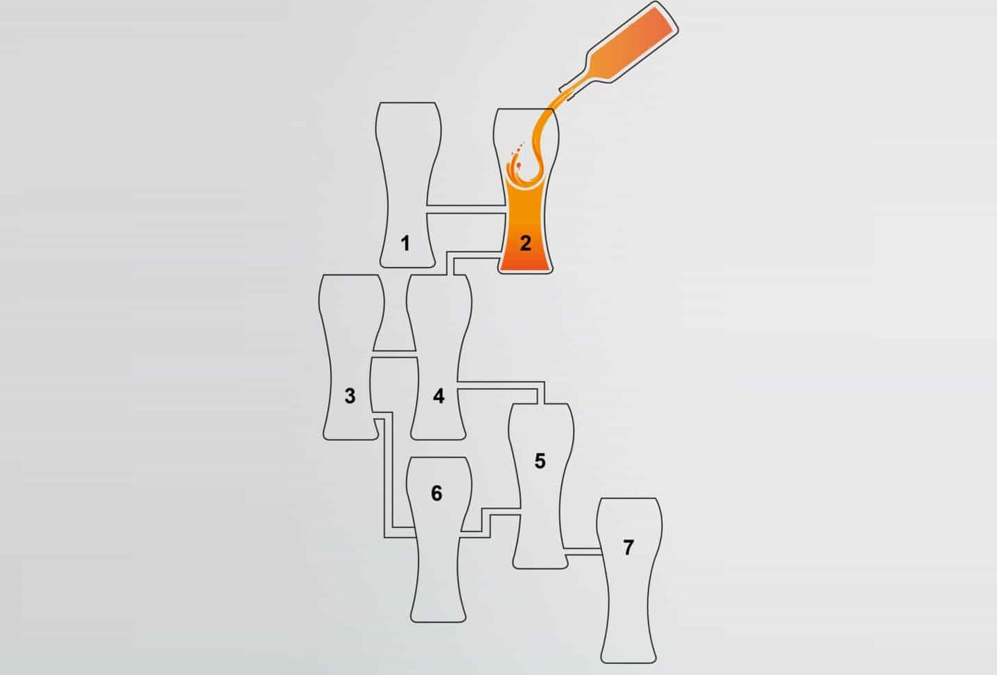 Η παρακάτω εικόνα δείχνει έναν περίπλοκο λαβύρινθο από σωλήνες και ποτήρια και σας ζητείται να υπολογίσετε ποιο ποτήρι θα γεμίσει πρώτο με μπίρα. Ωστόσο δεν έχετε πολύ χρόνο. Πρέπει να βρείτε την απάντηση σε μόλις 18 δευτερόλεπτα.