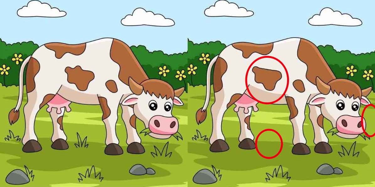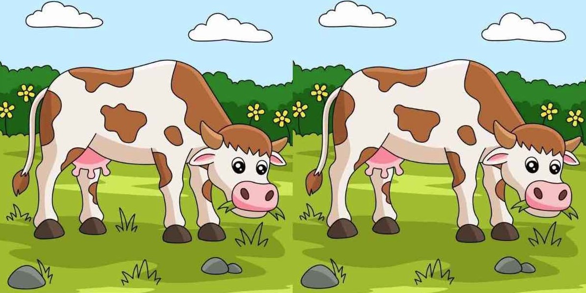 Το συγκεκριμένο τεστ παρατηρητικότητας παρουσιάζει δύο πανομοιότυπες εικόνες με μία αγελάδα. Δώστε προσοχή στις λεπτομέρειες και αναζητήστε τυχόν διαφορές μεταξύ των δύο εικόνων. Συγκρίνετε σχήματα και χρώματα.