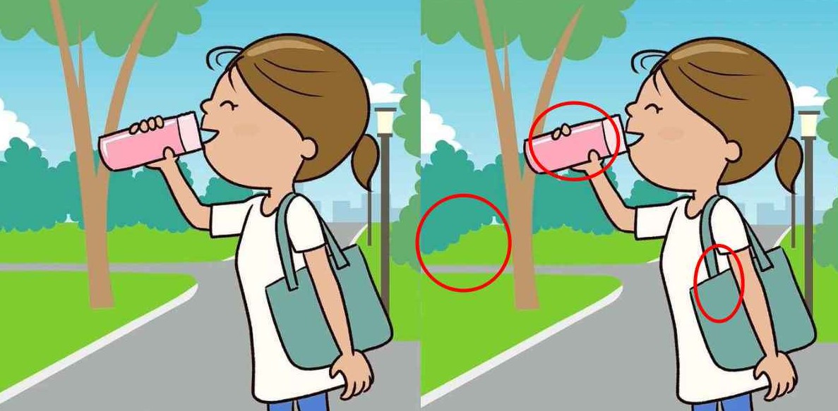 Το συγκεκριμένο τεστ παρατηρητικότητας παρουσιάζει δύο πανομοιότυπες εικόνες με ένα κορίτσι που πίνει νερό. Δώστε προσοχή στις λεπτομέρειες και αναζητήστε τυχόν διαφορές μεταξύ των δύο εικόνων. Συγκρίνετε σχήματα και χρώματα.