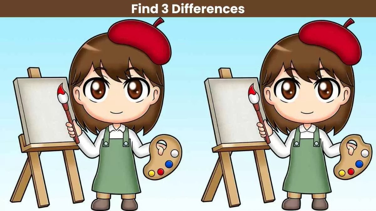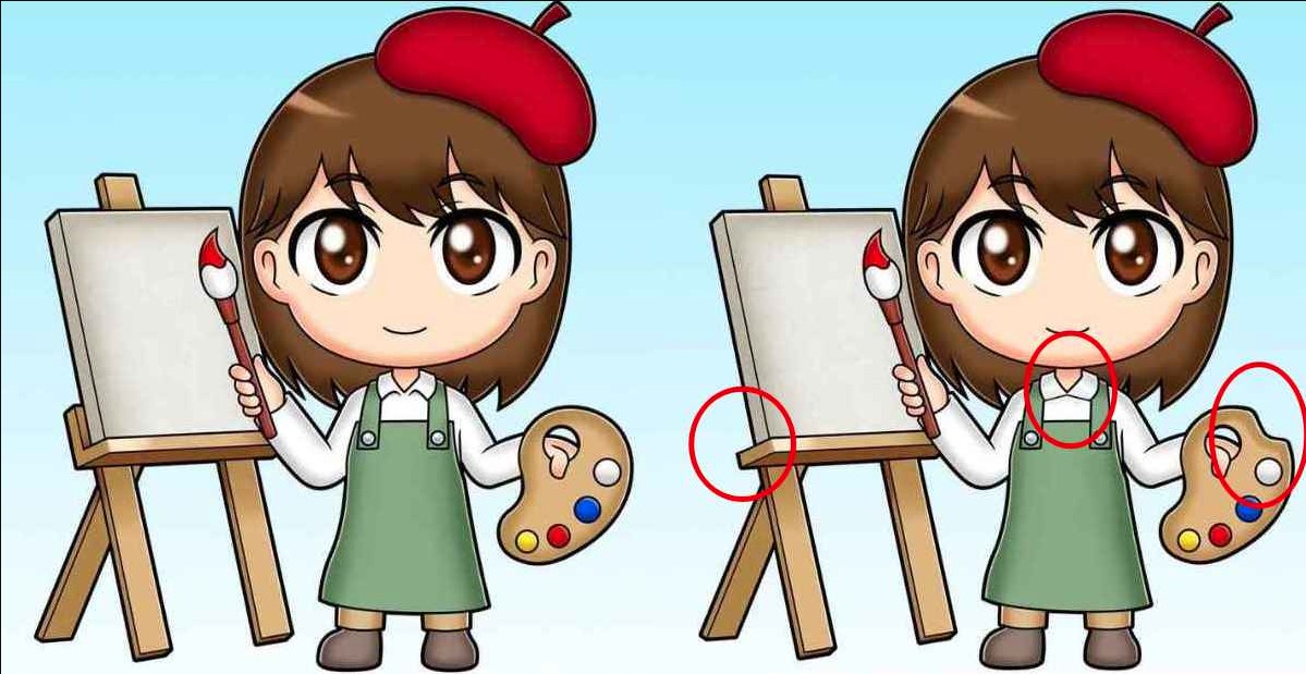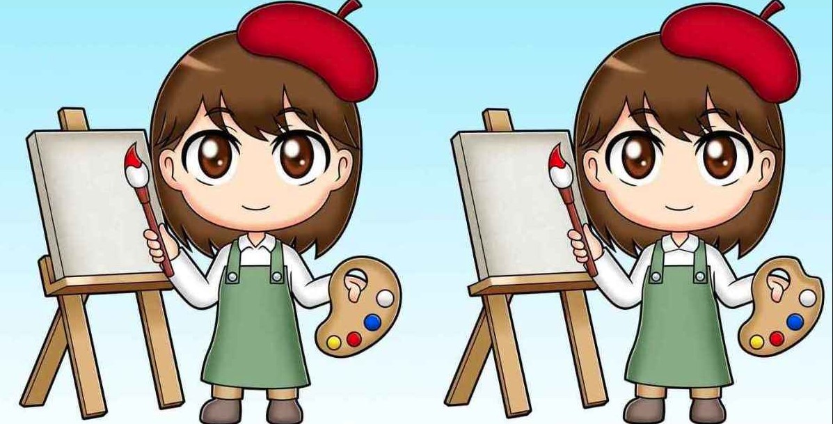 Το συγκεκριμένο τεστ παρατηρητικότητας παρουσιάζει δύο πανομοιότυπες εικόνες με ένα κορίτσι ζωγράφο. Δώστε προσοχή στις λεπτομέρειες και αναζητήστε τυχόν διαφορές μεταξύ των δύο εικόνων. Συγκρίνετε σχήματα και χρώματα.