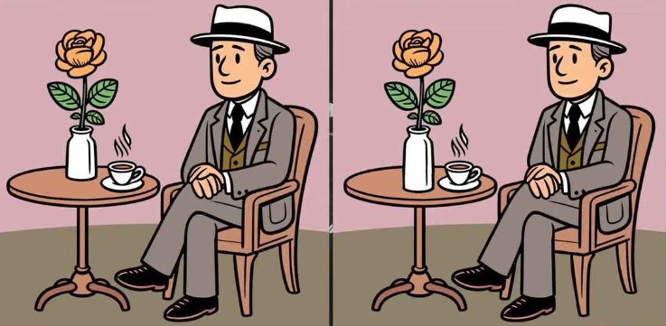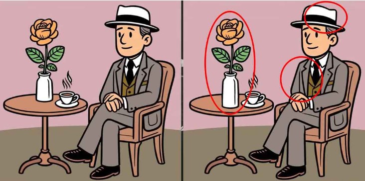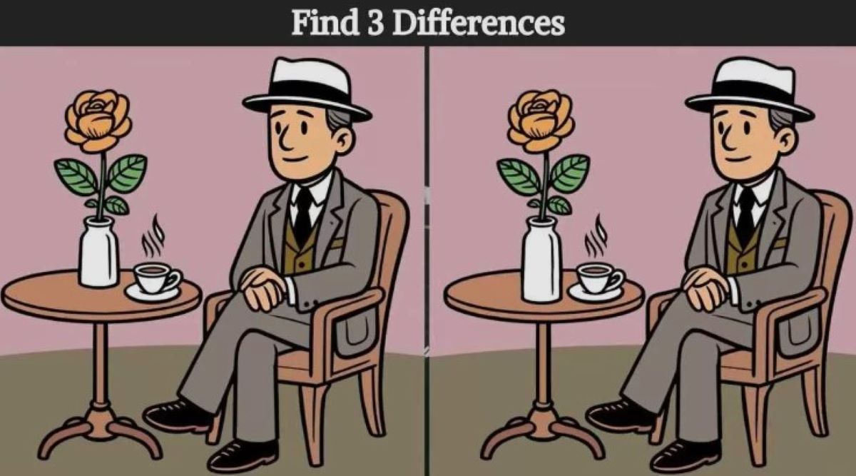 Το συγκεκριμένο τεστ παρατηρητικότητας παρουσιάζει δύο πανομοιότυπες εικόνες με έναν κύριο ο οποίος απολαμβάνει τον καφέ του. Οι εικόνες φαίνονται σχεδόν ίδιες, αλλά υπάρχουν 3 διαφορές μεταξύ τους.