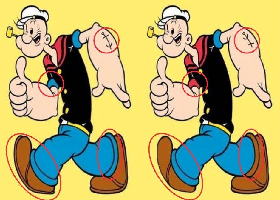 Το συγκεκριμένο τεστ παρατηρητικότητας παρουσιάζει δύο πανομοιότυπες εικόνες με τον Ποπάυ. Δώστε προσοχή στις λεπτομέρειες και αναζητήστε τυχόν διαφορές μεταξύ των δύο εικόνων. Συγκρίνετε σχήματα και χρώματα.