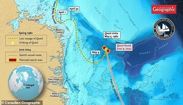 Το σκάφος, που ονομάζεται Quest, εντοπίστηκε στον πυθμένα της θάλασσας στα ανοικτά των ακτών του Newfoundland