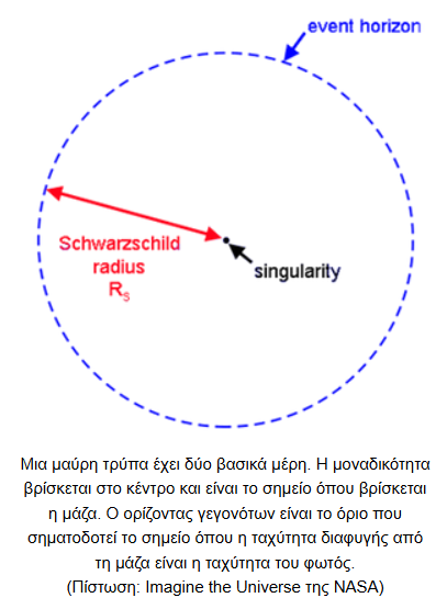 Υπάρχουν δύο βασικά μέρη σε μια μαύρη τρύπα: η μοναδικότητα και ο ορίζοντας γεγονότων.