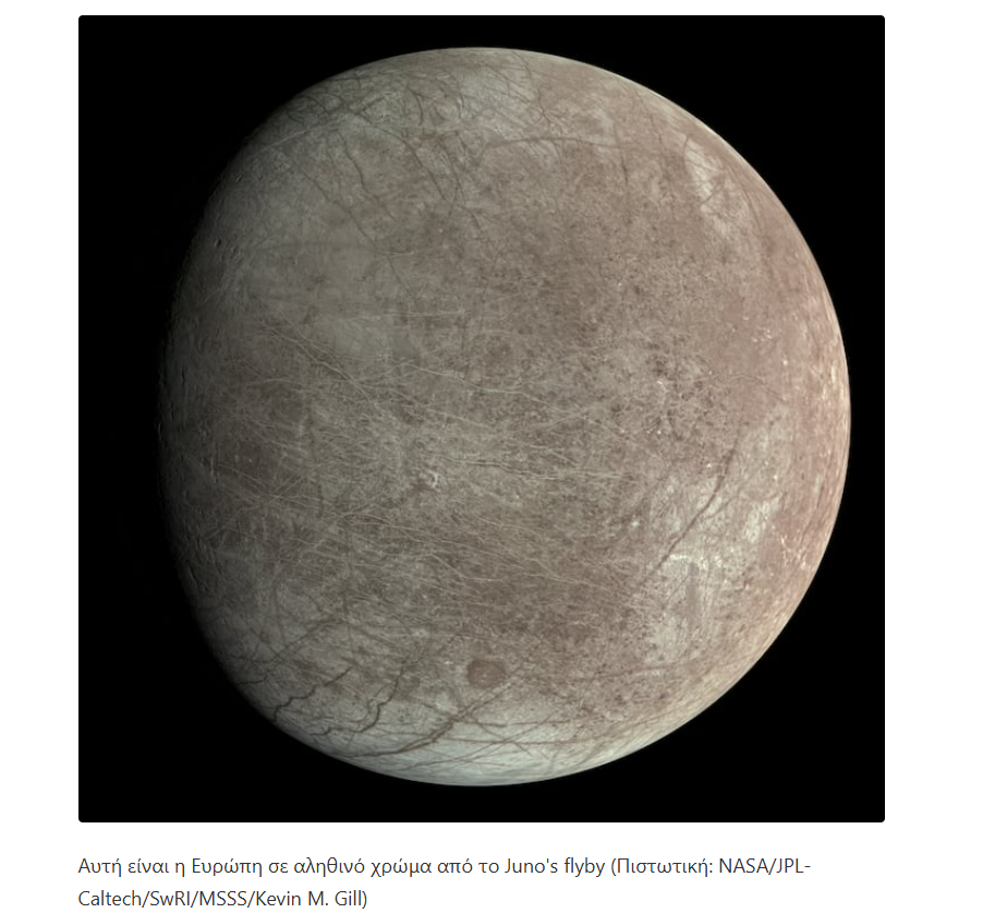 Η Ευρώπη, ένας από τους τέσσερις μεγάλους δορυφόρους του Δία που ανακάλυψε ο Γαλιλαίος πριν από 400 χρόνια, είναι ελαφρώς μικρότερη από τη Σελήνη της Γης και καλυμμένη από ένα παχύ στρώμα πάγου.