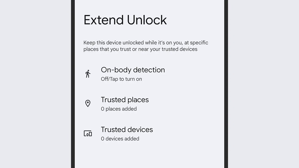 Διατηρεί το τηλέφωνό σας ξεκλειδωμένο αν βρίσκεστε σε ένα αξιόπιστο μέρος, αν το τηλέφωνό σας ανιχνεύσει ότι βρίσκεται πάνω σας ή αν μια αξιόπιστη συσκευή (όπως ένα έξυπνο ρολόι) βρίσκεται κοντά σας. Χρησιμοποιήστε το όμως με προσοχή – πρέπει να εξισορροπήσετε προσεκτικά την ασφάλεια και την ευκολία.