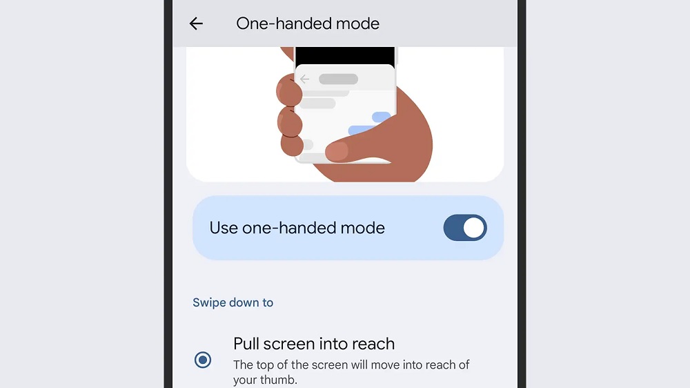 Το Android διαθέτει μια λειτουργία ενός χεριού (one-handed mode), που διευκολύνει τη χρήση του τηλεφώνου σας με το ένα χέρι – μπορείτε να την ενεργοποιήσετε στις Ρυθμίσεις, Προσβασιμότητα, Έλεγχοι συστήματος και Λειτουργία ενός χεριού (one-handed mode). Στη συνέχεια, ενεργοποιήστε την σύροντας από το επάνω μισό της οθόνης προς τα κάτω.