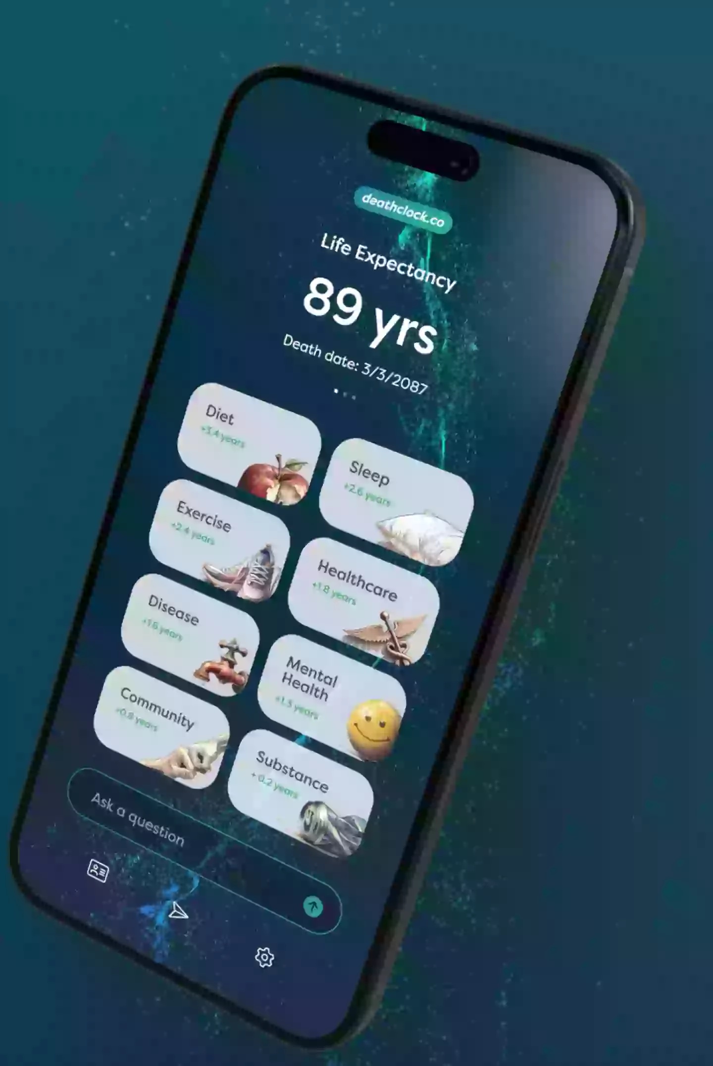 Στον ιστότοπο του ρολογιού θανάτου, αναφέρεται: «Το Death Clock AI αναλύει τις επιλογές της ζωής σας για να καθορίσει πότε θα πεθάνετε και πώς μπορείτε να βελτιώσετε τις συνήθειές σας για να ζήσετε ακόμα περισσότερο».