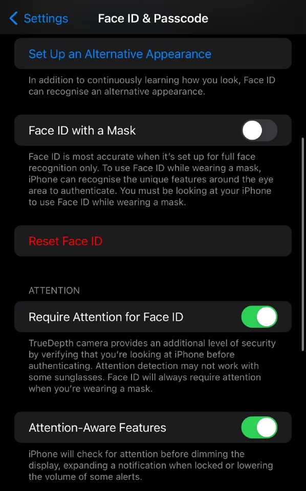 Ένα άλλο χρήσιμο κόλπο που αξίζει να γνωρίζετε είναι η ρύθμιση “Εναλλακτική Εμφάνιση” του Face ID. Η Apple εξηγεί: «Για τους περισσότερους χρήστες, το Face ID θα μαθαίνει συνεχώς καθώς αλλάζουν. Εάν έχετε μια εμφάνιση που μπορεί να φαίνεται πολύ διαφορετική, μπορείτε να ορίσετε μια εναλλακτική εμφάνιση, ώστε το Face ID να σας αναγνωρίζει ακόμα»