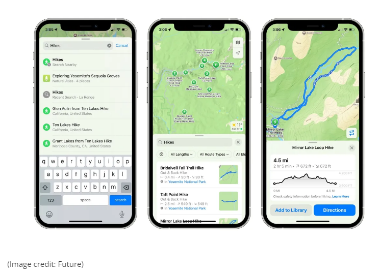 Μπορείτε τώρα να δείτε μια τοπογραφική άποψη των μονοπατιών πεζοπορίας, που βοηθά να προγραμματίσετε και να κατανοήσετε καλύτερα τη διαδρομή που θα ακολουθήσετε (σημειώστε ότι είναι διαθέσιμο μόνο στις Η.Π.Α. και στην Ιαπωνία προς το παρόν) και οι διαδρομές μπορούν να αποθηκευτούν για offline προβολή, κάτι που είναι χρήσιμο αν θα επισκεφθείτε μια περιοχή με πολύ κακό σήμα. Επιπλέον, οι τοποθεσίες είναι τώρα καλύτερα οργανωμένες στη βιβλιοθήκη της εφαρμογής, με κατηγορίες όπως Αποθηκευμένα, Τοποθεσίες, Οδηγοί και Διαδρομές, κάνοντάς την πιο εύκολη στη διαχείριση όλων των αποθηκευμένων σημείων σας.