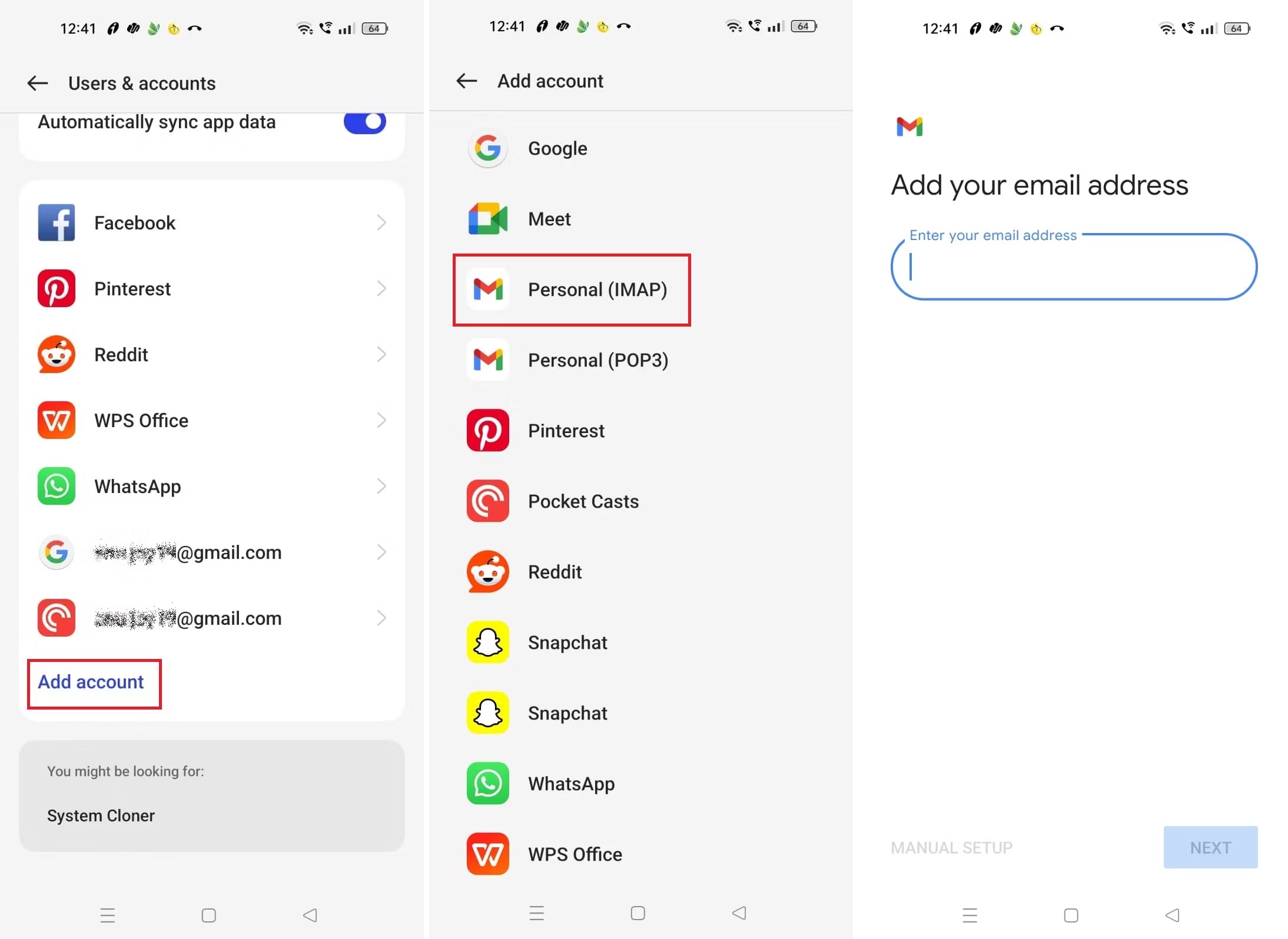 - 4. Στα τηλέφωνα Samsung, μεταβείτε στην επιλογή Λογαριασμοί και δημιουργία αντιγράφων ασφαλείας > Διαχείριση λογαριασμών > Προσθήκη λογαριασμού.