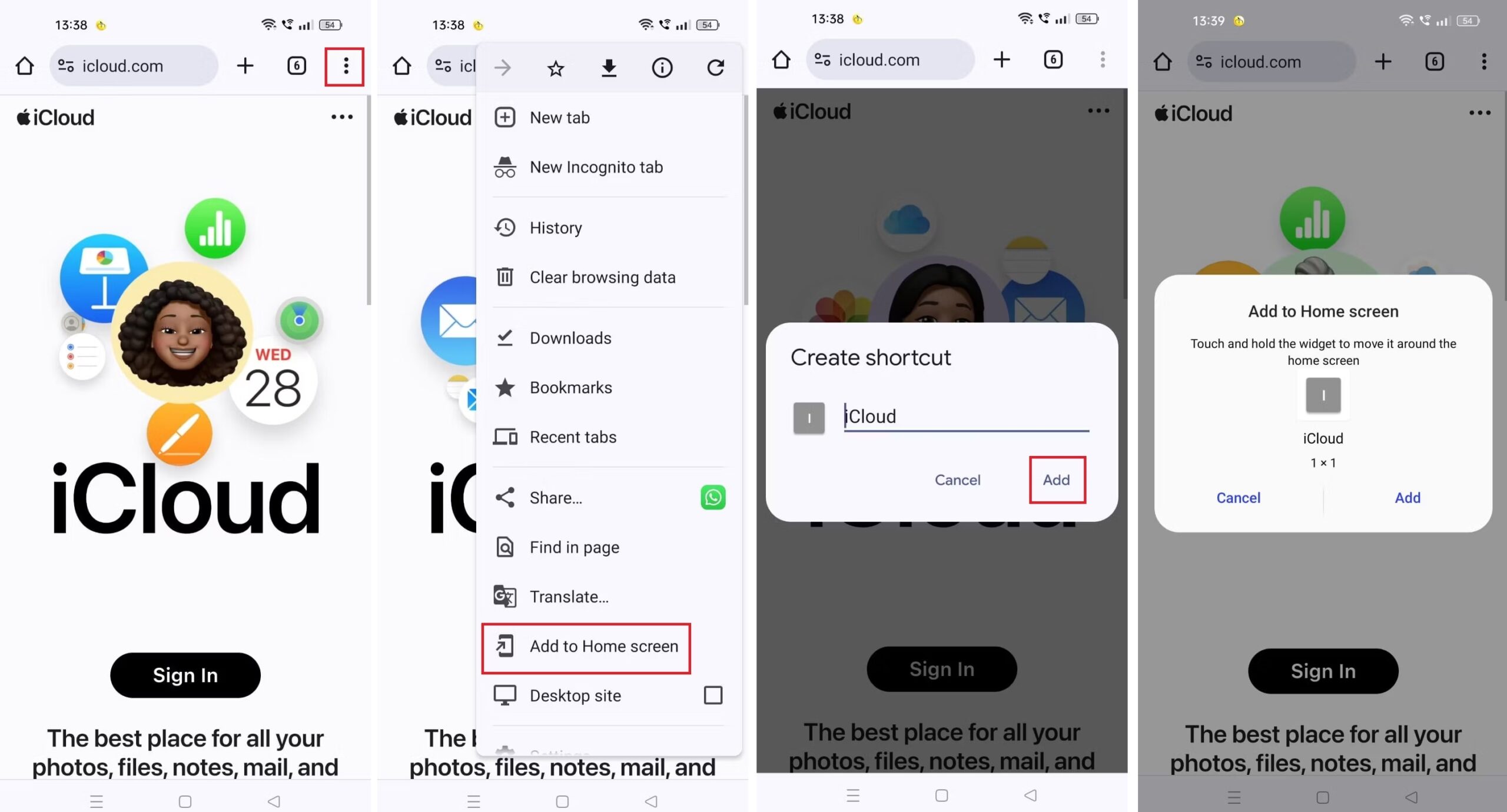 Αν σκοπεύετε να επισκέπτεστε συχνά τον ιστότοπο iCloud, προσθέστε μια συντόμευση στο τηλέφωνό σας. Μπορείτε να την πατήσετε για να την ανοίξετε από την αρχική σας οθόνη.