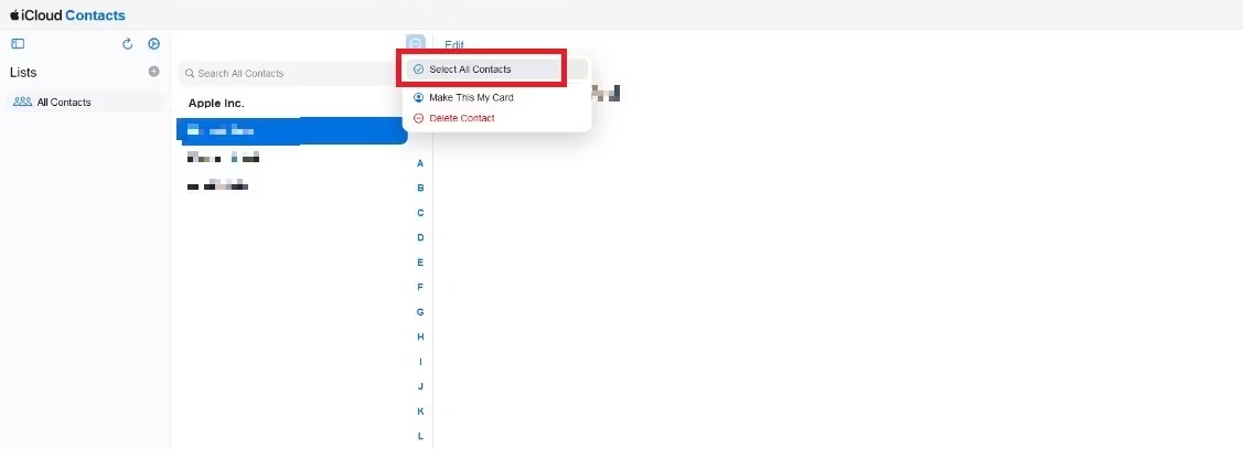 - 4. Κάντε κλικ στην επιλογή Επιλογή όλων των επαφών.