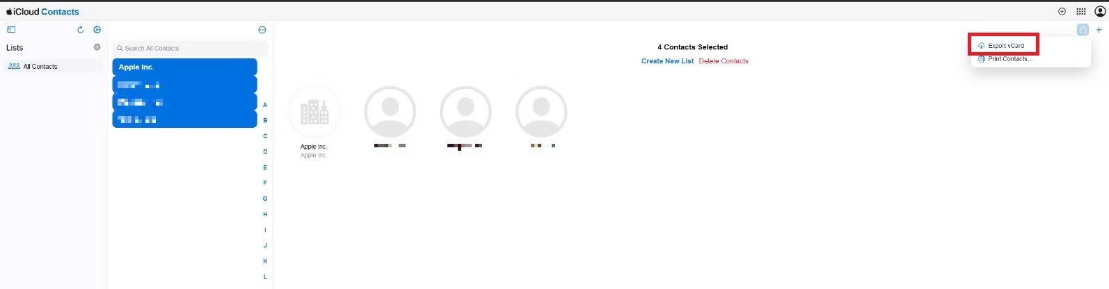 - 5. Επιλέξτε το εικονίδιο μεταφόρτωσης και κάντε κλικ στην επιλογή Εξαγωγή vCard για να την αποθηκεύσετε στον υπολογιστή σας.