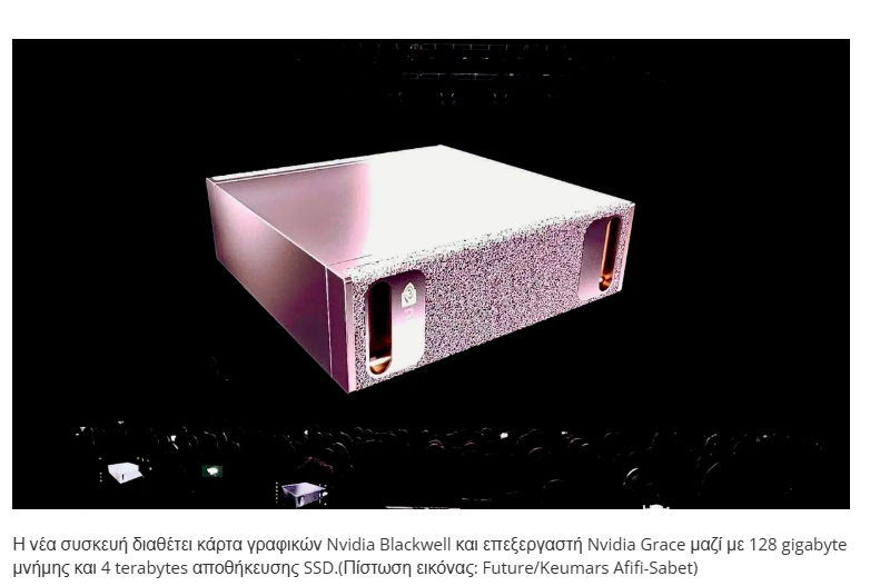 Η νέα συσκευή, σύμφωνα με τον Keumars Afifi-Sabet, διαθέτει κάρτα γραφικών Nvidia Blackwell και επεξεργαστή Nvidia Grace μαζί με 128 gigabytes μνήμης και 4 terabytes αποθηκευτικού χώρου SSD.