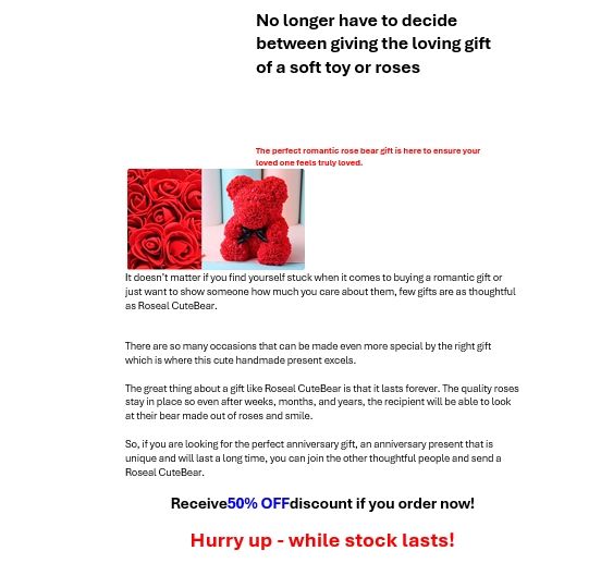 Ορισμένα από τα μηνύματα απάτης με θέμα τον Άγιο Βαλεντίνο που ανάλυσαν οι ερευνητές του Bitdefender Antispam Lab οδηγούν τους παραλήπτες σε ψεύτικους ιστότοπους που προσφέρουν τεράστιες εκπτώσεις σε λουλούδια, αρκουδάκια και σοκολάτες, ενώ άλλα υπόσχονται τεράστια δώρα σε μετρητά, ώστε να μπορείτε να περιποιηθείτε τον αγαπημένο σας την ημέρα του Αγίου Βαλεντίνου.