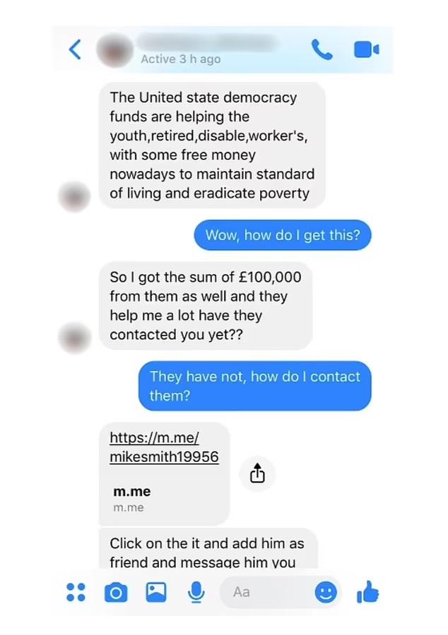«Η συνομιλία ξεκίνησε με ένα απλό “Γεια σου, τι κάνεις;” και στη συνέχεια ο χάκερ προχώρησε σε μια απάτη σχετικά με πληρωμές αποζημίωσης αξίας 150.000 δολαρίων» εξήγησε η Melanie, η οποία δήλωσε ότι ο απατεώνας φαινόταν να χρησιμοποιεί έναν κλωνοποιημένο λογαριασμό στο Facebook και ήταν «απίστευτα δύσκολο» να έρθει σε επαφή με το Facebook για να τον σταματήσει.