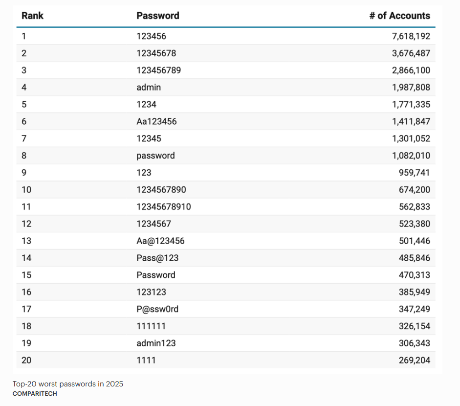 «Οι πιο κοινοί κωδικοί πρόσβασης το 2025 είναι οι “123456”, “admin” και “password”», κάτι που δεν πρέπει να προκαλεί έκπληξη σε έναν κόσμο όπου «ο κωδικός για το σύστημα βιντεοεπιτήρησης του Λούβρου ήταν “Louvre”». Μερικές φορές, είμαστε πραγματικά οι χειρότεροι εχθροί του εαυτού μας.