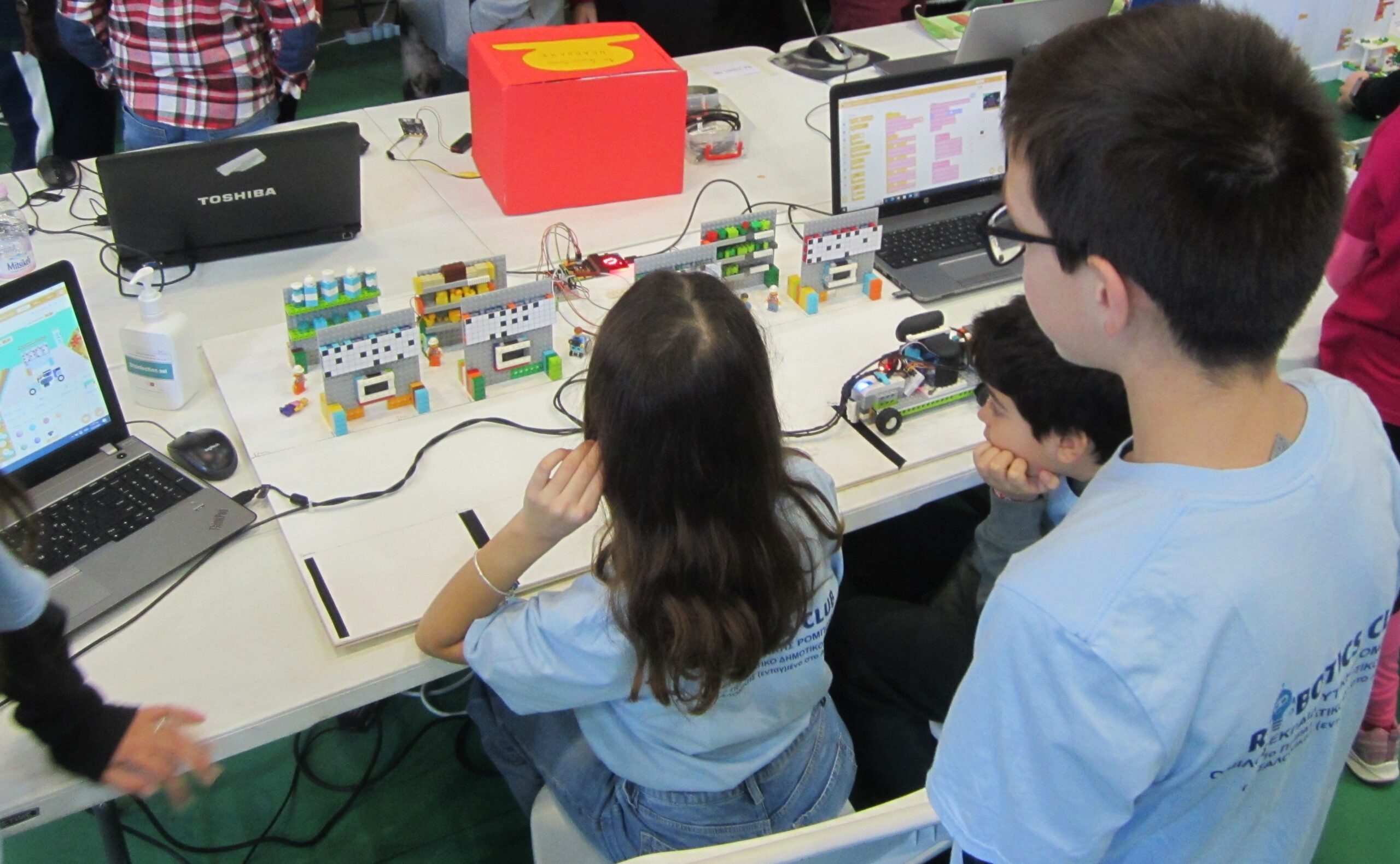 Στο φετινό 16ο Μαθητικό Συνέδριο Πληροφορικής το 1ο Πειραματικό Δημοτικό Σχολείο Θεσσαλονίκης παρουσίασε μια κατασκευή που περιλαμβάνει ποικιλία αυτοματισμών ρομποτικής και φυσικής υπολογιστικής διεπαφής. Σκοπός της είναι ο αυτοματισμός της φόρτωσης και εκφόρτωσης εμπορευματοκιβωτίων (container) σε πλοία.