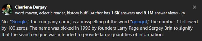 Με άλλα λόγια, μία από τις ισχυρότερες μηχανές αναζήτησης στον κόσμο ονομάστηκε από ένα τυπογραφικό λάθος σε μια μπάρα αναζήτησης.